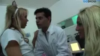 In this erotically-charged threesome, the daring blonde babe is paired with a charming dude and an eager stud for a night of intense passion they'd never forget.The room quickly fills with electricity as they touch, tease, and tantalize one another, their desire building as they strip down to their sexy underwear – her in a lace bra and panties set, him in tight briefs that only leave something to the imagination.Their lustful gazes lock as each partner begins to explore the other's bodies, caressing, rubbing, and fondling with skillful hands that yearn for more contact and skin-on-skin sensations.As they move toward the main event, the two men begin to pleasure the blonde babe, taking turns to fuck her tight little cunt while she moans in delight and submits to their skilled fingers exploring every inch of her moist core.The stud watches intently as the dude penetrates her from behind, enjoying the sight of his partner being stretched out and taken by another eager body.The blonde babe's eyes flutter with pleasure, her breathing ragged and panting in a mixture of anticipation and aching need for more.When she has been fully fucked and stretched to her limits, they pause momentarily to allow their hearts to race, their breaths catch and their skin glisten from the passionately shared sweat.The stud and dude take turns eating the blonde babe's shaved pussy with gusto, flicking her clit with expert precision while she arches her back in ecstatic delight.She comes hard, her body trembling uncontrollably as the two men continue to pleasure her until she can take no more.The guys are ready to finish this explosive threesome with an eruption of sperm.Their cocks are throbbing and demanding relief.The dude bends her over a table, spreading her ass wide open to accommodate his sizeable dick.With her pussy already soaked and begging for more, she allows herself to be fucked from both ends – one guy pounding her from behind while the other plants his face in between her plump ass cheeks, tonguing and sucking on her sensitive clit as he relentlessly fucks her.Sperm sprays the air like a geyser, as the guy reaches his own orgasm in a facial cumshot, leaving the two women's faces covered with his sticky load.The stud follows suit soon after, coating the blonde babe's face and tits with his own eruption of creamy seed.The three lovers share a passionate embrace, as they bask in the glory of their steamy encounter that left them fulfilled, satisfied, and yearning for more.Their passion-filled threesome is as explicit as it gets – an experience they will relive in their dreams long after the ecstatic night has faded into memory.This daring blonde babe, paired with a charming dude and eager stud, indulged in every desire, craving, and erotic whim, resulting in a threesome that will never be forgotten by those who dare to seek out their own version of passion, pleasure, and fulfillment.