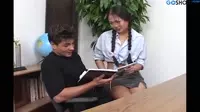 As the student entered his classroom on a busy morning, he could hardly contain his hunger.Hed spent all night cramming for this big test that was imminent.The weight of the knowledge he needed to absorb sat heavily on his shoulders.Little did he know that he was about to get much more than an education in the next couple of hours.As he stood up, stretching his stiff legs from the long night of studying, he couldnt help but notice her a beautiful and mysterious woman with flowing braids who seemed out of place.Her gaze lingered on him, setting off butterflies in his stomach.This was a woman with an air of seduction about her, someone who could satisfy his ravenous hunger.You look so hungry, she whispered to him as he walked by her, her breath caressing his ear.It sent shivers down his spine as his heart raced, imagining all the ways in which she could sate him.They stepped into an empty classroom and locked the door behind them.He could feel her presence as she moved closer to him, her hands exploring his body.Her fingers danced a tantalizing dance along his arms before slipping inside his shirt.She nibbled at his earlobe and whispered into his ear again, I can relieve your hunger for knowledge.She took him by the hand and guided him to a large wooden desk at the front of the classroom, placing him on all fours.The student was hesitant yet excited as he felt her hot breath against his neck, her nails gently digging into his flesh.He could feel his pulse throbbing, arousal rising at the thought of her fulfilling every fantasy.Lowering herself to the floor, she positioned her face near him and began to bestow her affections on him in a way he had never experienced before.This woman was an insatiable cocksucker relentless and unstoppable in her pursuit of satisfying his hunger.The students eyes rolled back as he gripped the edge of the desk, feeling waves of pleasure course through him.In this position, she continued to devour him hungrily, her mouth working him over, her tongue darting in and out, taking him to ecstasy.His breathing grew heavy as his climax approached.As he let out a guttural groan, her lips enveloped him one last time, milking him until every last drop was extracted, leaving him spent.With a final smirk, she stood up, brushing her lips against his cheek and whispered into his ear, Now youre fully satisfied, ready to conquer the world.She adjusted her clothes as they both rose from the desk, both knowing this encounter would forever change the students life.And as he stepped out of that classroom, his hunger now sated by more than knowledge, he realized that life was about to get a whole lot more interesting.