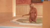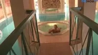Pigtailed blonde basks in spa orgy delights
