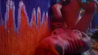 The video begins with a passionate embrace between the couple, their bodies pressing against each other with pure lust in their eyes.As their hands roam over each others naked skin, their breathing becomes heavier, signaling an imminent climax to the anticipation.The woman drops to her knees, eagerly pulling down the mans pants and presenting herself for his dominance.He grips the back of her head, guiding her mouth towards his erect penis with an intensity that sends shivers down her spine.With her lips wrapped around his throbbing member, she starts bobbing her head, creating a perfect rhythm as the man closes his eyes and savors each moment.The sight of the womans gaping pussy is the mans next target he desires to feel the wetness of her cunt with his tongue.As he lays down on the bed, she straddles him, lowering herself onto his face in a display of uninhibited lust.His tongue flicks at her sensitive clit, causing her pussy to convulse and her thighs to tremble.Suddenly, the woman flips over and positions herself on all fours, offering her throat for his pleasure.She knows that he loves seeing her fun while he plunges into her gagging mouth.The man takes full advantage of the situation, fucking her throat with a rhythmic precision as she gags uncontrollably.Their passion reaches its peak as he moves to penetrate her gaping pussy in various positions, his cock sliding in and out of her wet cunt, stretching it wide open.The womans cunt is a sight to behold the lips spread apart, revealing the engorged clit and the labia swollen from the pounding.The mans penis plunges into the wetness again, fucking her deep as they both moan in pleasure.Her pussy grips his cock with an intensity that sends shivers down his spine.The man is now at the height of arousal and starts thrusting even harder, their bodies glistening with sweat and passion.In between positions, she still fondles her clit, bringing herself closer to the edge each time, while he jerks off his own cock to the sound of her gagging.Their eyes lock, a mutual understanding evident between them, and as they reach their climax together, their moans echo through the room, punctuating the air with their shared pleasure.With their bodies trembling and hearts racing, they collapse into each others arms, spent from the animalistic fuckfest.Their mouths meet in a tender kiss, the afterglow of their passionate sex scene lingering on their naked skin.