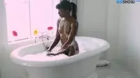 The scene opens with the two stunning ebony beauties standing under a cascade of water in their intimate bathroom.Their bodies gleam as the steam from the shower surrounds them and the warm spray of the shower rains down upon them.Their luscious curves, accentuated by their seductive outfits, are on full display as they indulge in a sensual bath time moment together.The ebony goddesses slowly caress each others bodies, exploring every inch and savoring the touch of soft skin meeting soft skin.Their hands glide over each others moist bodies, their fingers expertly tracing tantalizing patterns on sensitive flesh as they take pleasure in each others company.The water splashes around them as their passionate caresses turn into passionate kisses.As the shower continues to rain down on their bodies, one ebony beauty moves her hand downward to the curve of her lovers hip, feeling the heat from within.She reaches for the moistening cleft between her lovers plump cheeks and teases the swollen folds hidden therein.The other beauty moans softly as she enjoys the pleasure of being touched in this private place, the sound mingling with the watery sounds of their erotic encounter.With a knowing smile, they take a step closer to each other under the shower head, letting it drench them even more, while allowing the cascading water to create a steamy fog around them.Their wet hair and flushed cheeks glow in the soft light of the bathroom.Their tongues dance in a deep, passionate kiss, as their hands continue to explore each others bodies.One of the beauties then lowers her head between her lovers legs, eager to indulge in even more pleasures.As water from the shower sprays onto her face, she parts the glistening folds with her fingers and expertly begins to caress and lick at the sensitive core within.Her own ebony goddess takes this opportunity to wrap her hands around one breast while nibbling gently on her lovers earlobe, adding an extra layer of stimulation that pushes them both closer to their desirefilled climax.The sensations build quickly as they become increasingly entwined in their mutual pleasure.The first orgasm surges through the body of one ebony goddess, causing her muscles to spasm and contract, her breathing becoming more labored.As she reaches the peak, the other beauty continues her attentions, prolonging the ecstasy and ensuring that they share this moment together in their erotic underwater realm.And so, under the shower and surrounded by steamy clouds of desire, these two ebony beauties indulge themselves in a lesbian pleasure that leaves them both breathless and wanting more.Their bodies glisten as they look into each others eyes, sharing this intimate moment, letting the water from the shower wash away any lingering doubts or fears, leaving only passion behind.The water cascades down on them, their skin still tingling with the sensations of their lovemaking.They leave the bathroom, drenched in water and desire, their minds full of memories of this bath time adventure that they will never forget.
